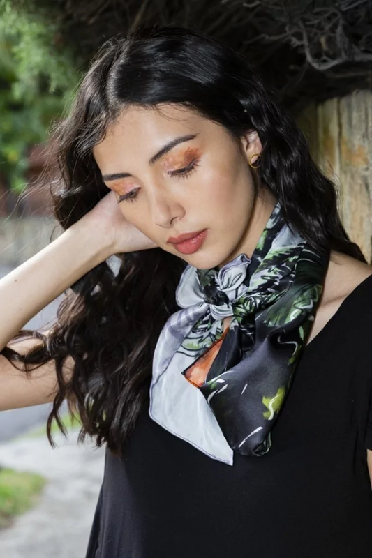 Pañuelo Hojarasca en Seda de 70x70 cm