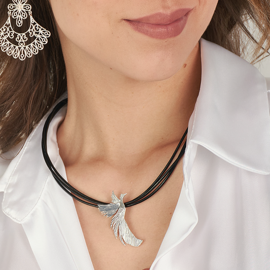 Collar Cuero Ave Fénix Resiliencia Dorado
