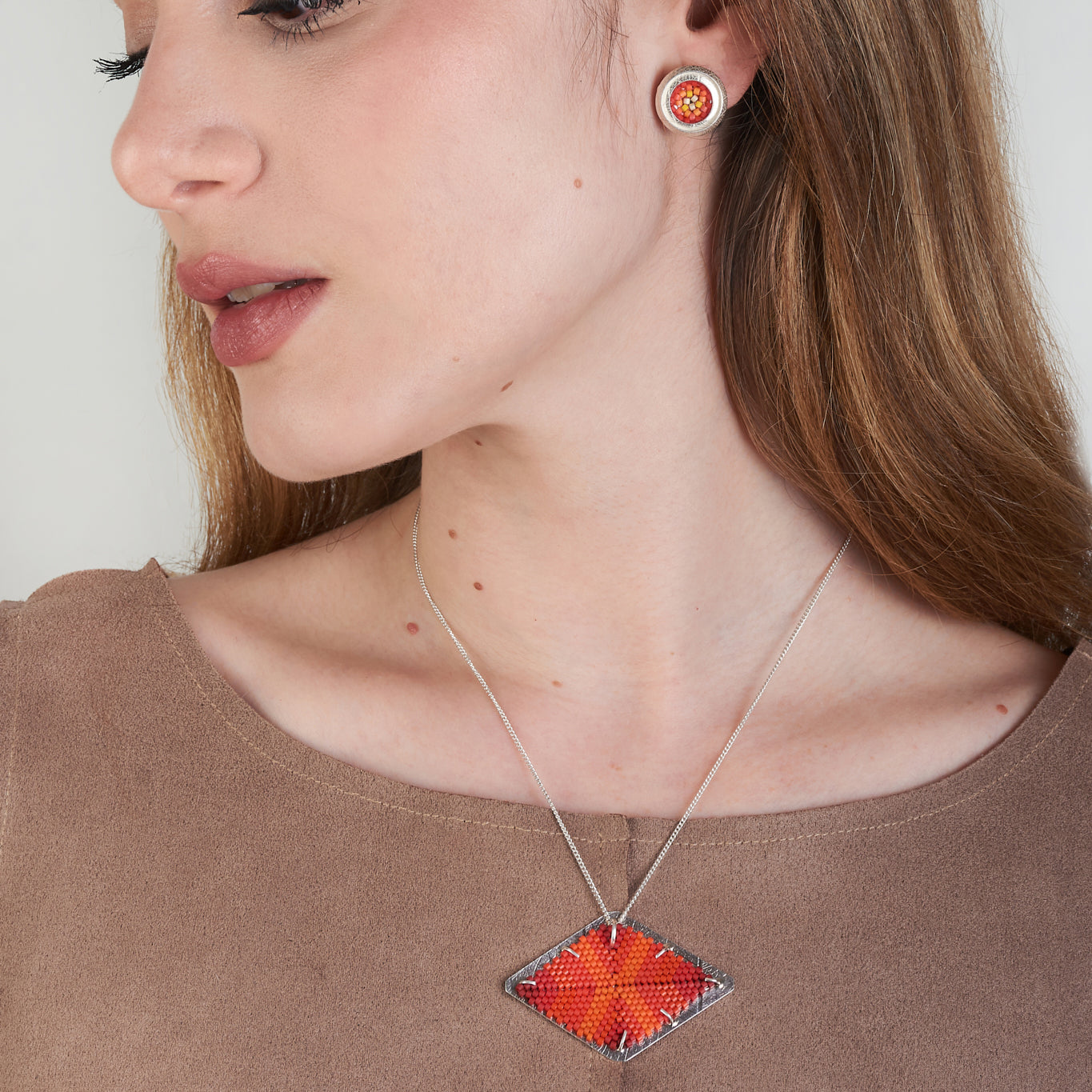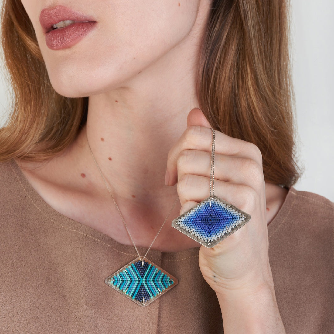 Collar perfecto para usar todos los días. Están hechos con un tejido en peyote con chaquiras checas y engastado sobre una estructura texturada en plata 925.