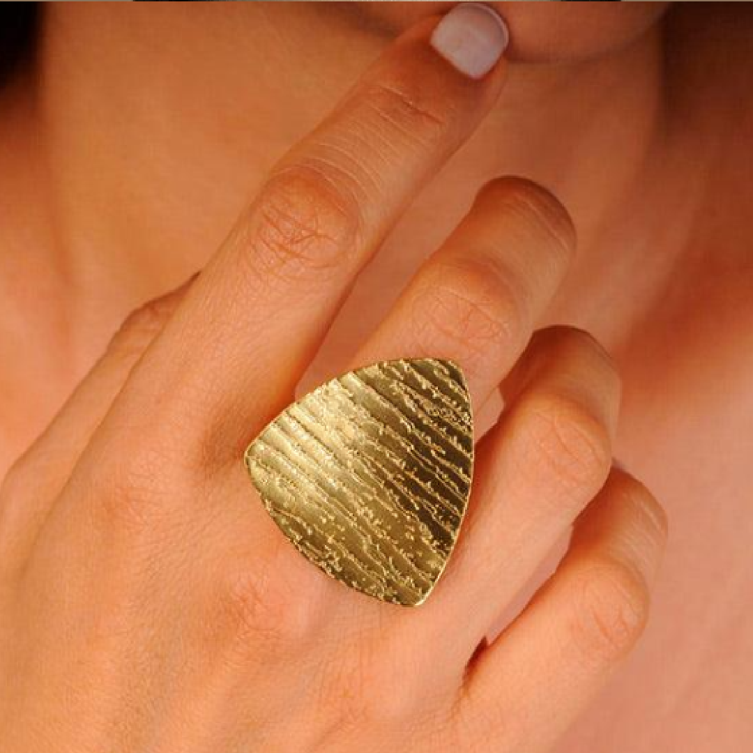 Anillo de nuestra colección Basic, inspirada en la geometría, base infinita de creación, jugando con las formas básicas y evocando diferentes lugares del mundo. Joyas atemporales que podrás lucir siempre. Hecho en bronce con baño de oro de 24K, laca cataforética, libres de níquel, libres de plomo (Hipoalergénicos).