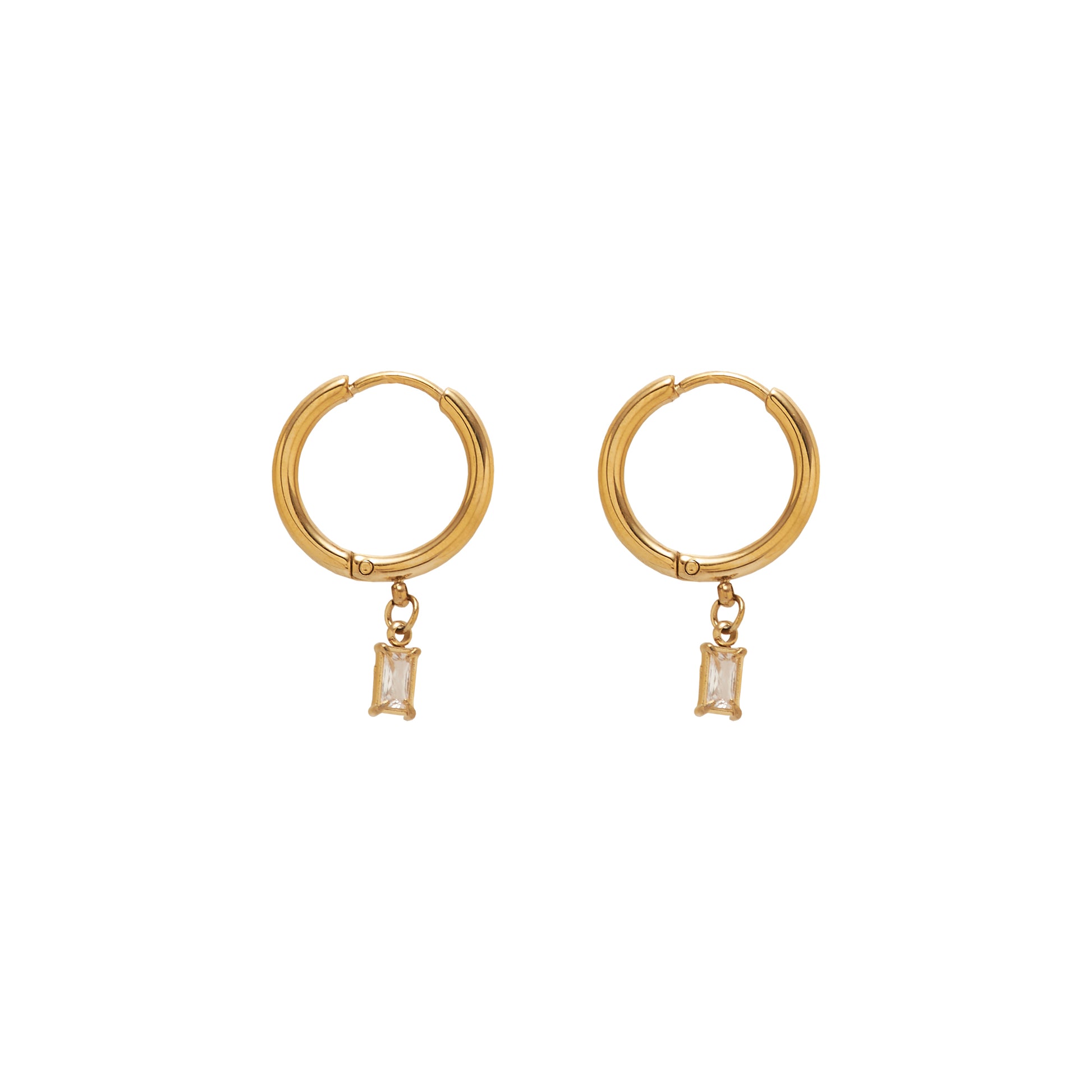 Candongas con piedra tallada en vidrio negro, elaboradas en acero quirúrgico con un y baño en oro de 18k.