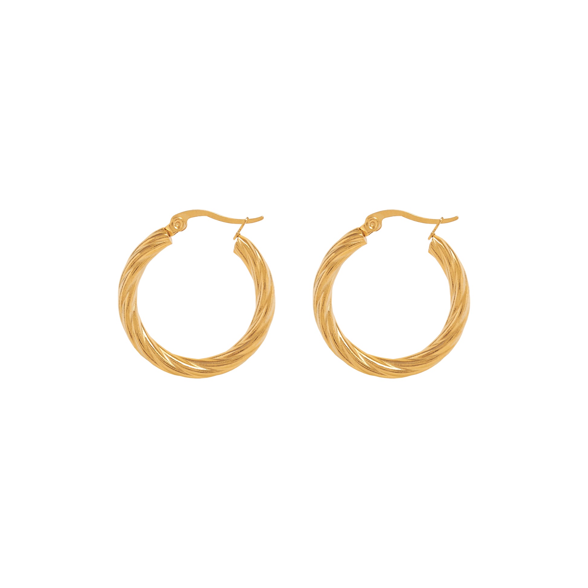 Candongas con diseño entorchado, en bronce con baño en oro de 24k. Livianas y perfectas para todo tipo de looks.