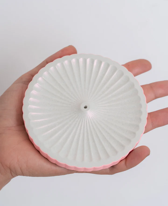 El Portaincienso Ondas Coral mantiene tu varita de incienso en posición vertical y recoge la ceniza. Úsalo también para poner tus sahumerios.
