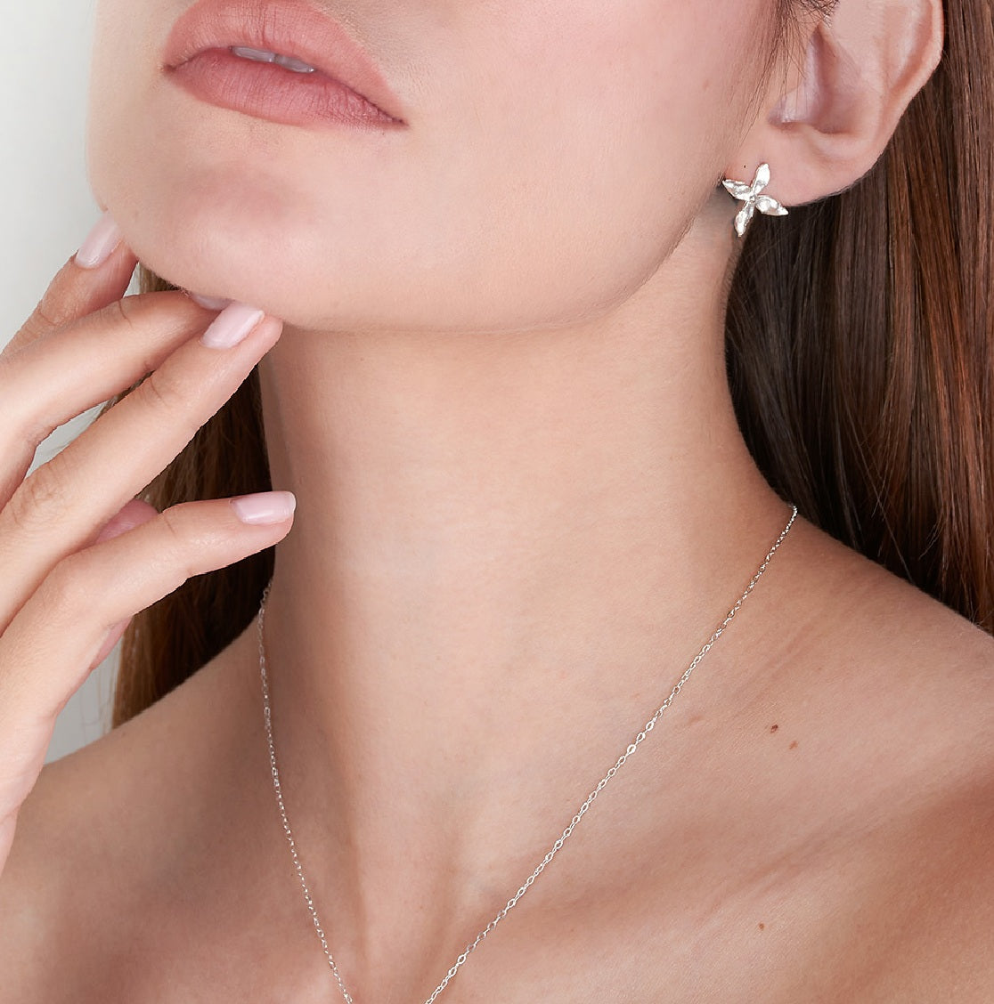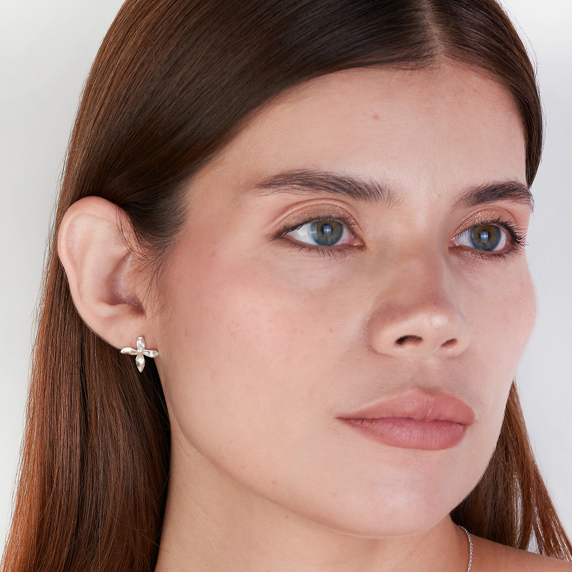 Aretes topo, Inspirado en la belleza de las flor ixora conocida por ser delicada. El diseño artesanal celebra la elegancia natural de la Ixora, creando una pieza que añade un toque de frescura y sofisticación a cualquier atuendo ,topos elaborados en plata 925.